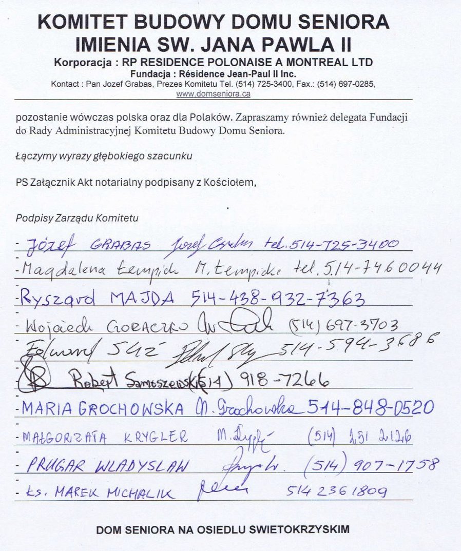 domu seniora podpisało 720 osób. Załączamy również listę podpisów Komitetu